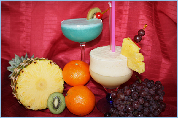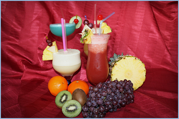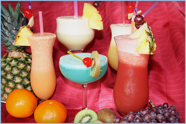 ein umfangreiches Angebot von fruchtigen Cocktails an.